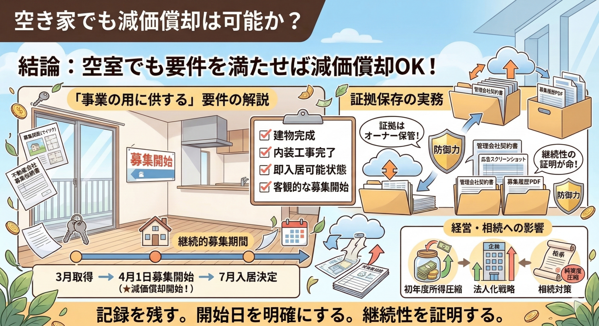 空き家でも減価償却は可能か?「事業の用に供する」要件と証拠保存の実務